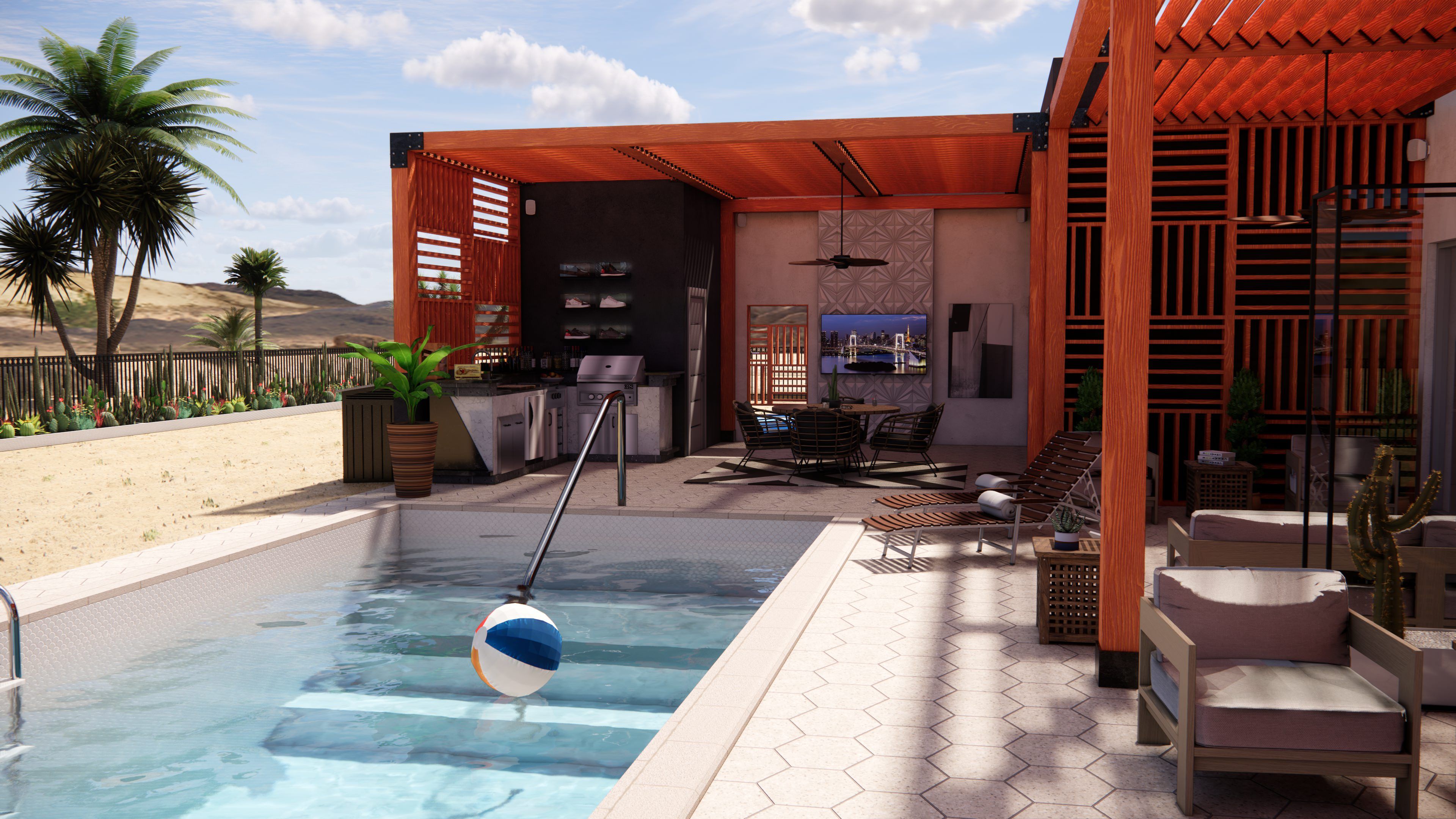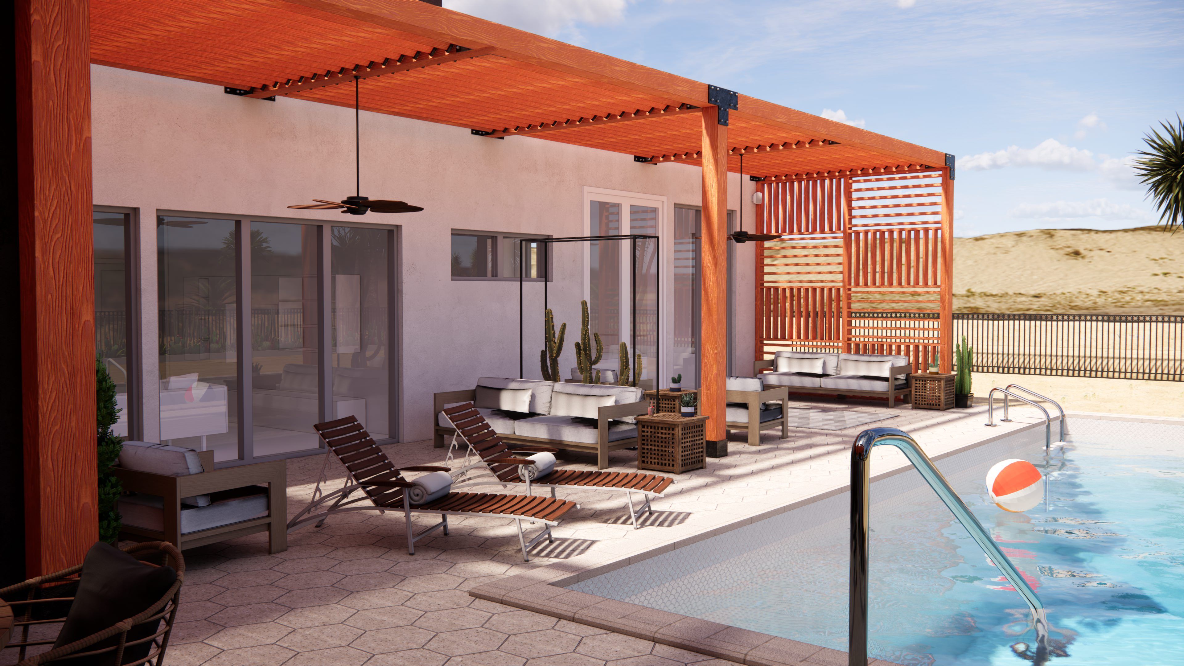 For this project, DAE Group was engaged to design an outdoor living space for a newly constructed home in Henderson, Nevada. The client was dissatisfied with the original architect’s plans for the backyard and outdoor living areas and approached our team to help bring his vision to life.